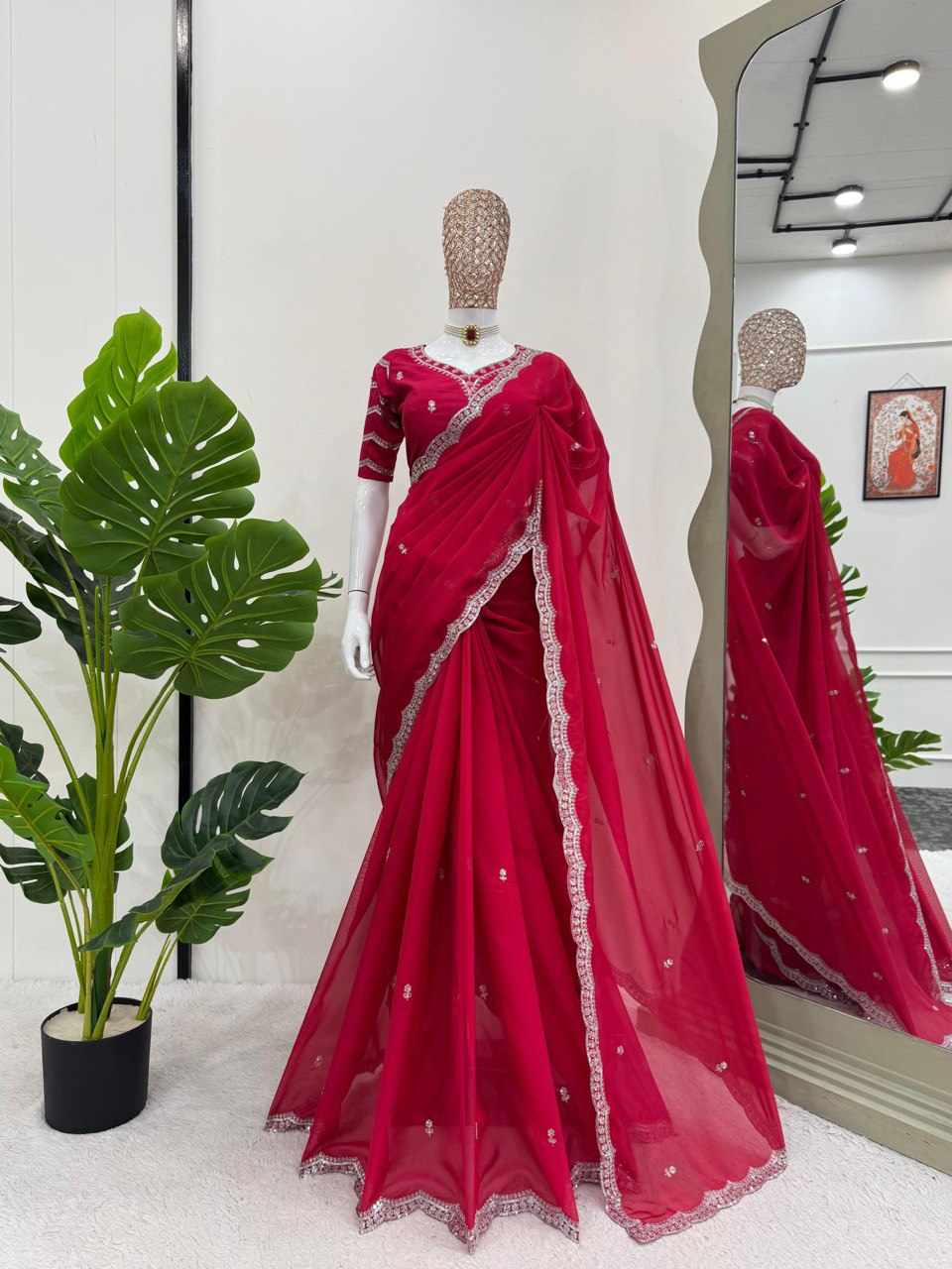 | Name : | KD 574 Red Heavy Tibby Silk Saree |
